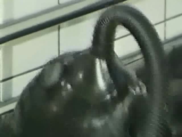 Strip with rubber dress and gas mask