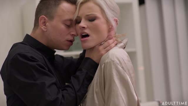 Sexy wife Katie Kush takes a big cock in her tight pussy from her husband's boss so he can get a promotion